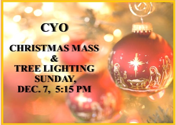 All CYO athletes, coaches, family and friends are invited to our annual Christmas Mass, Sunday, December 7, at 5:15 pm. Tree lighting, gift card drive and reception to follow in the auditorium. See the bulletin for more details!