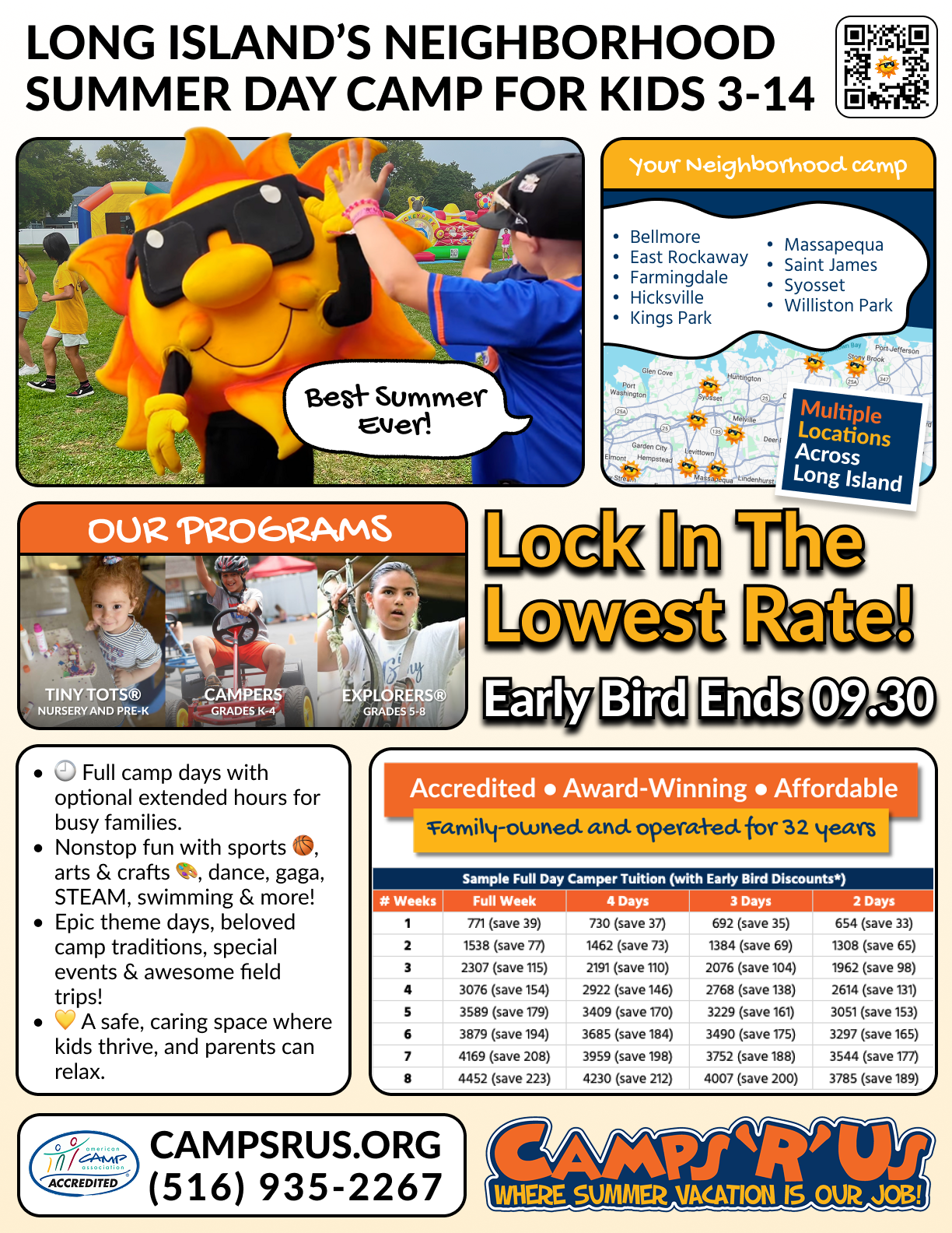 Lock in the lowest rates for Summer 2026 at Camps ‘R’ Us now through September 30, 2025.