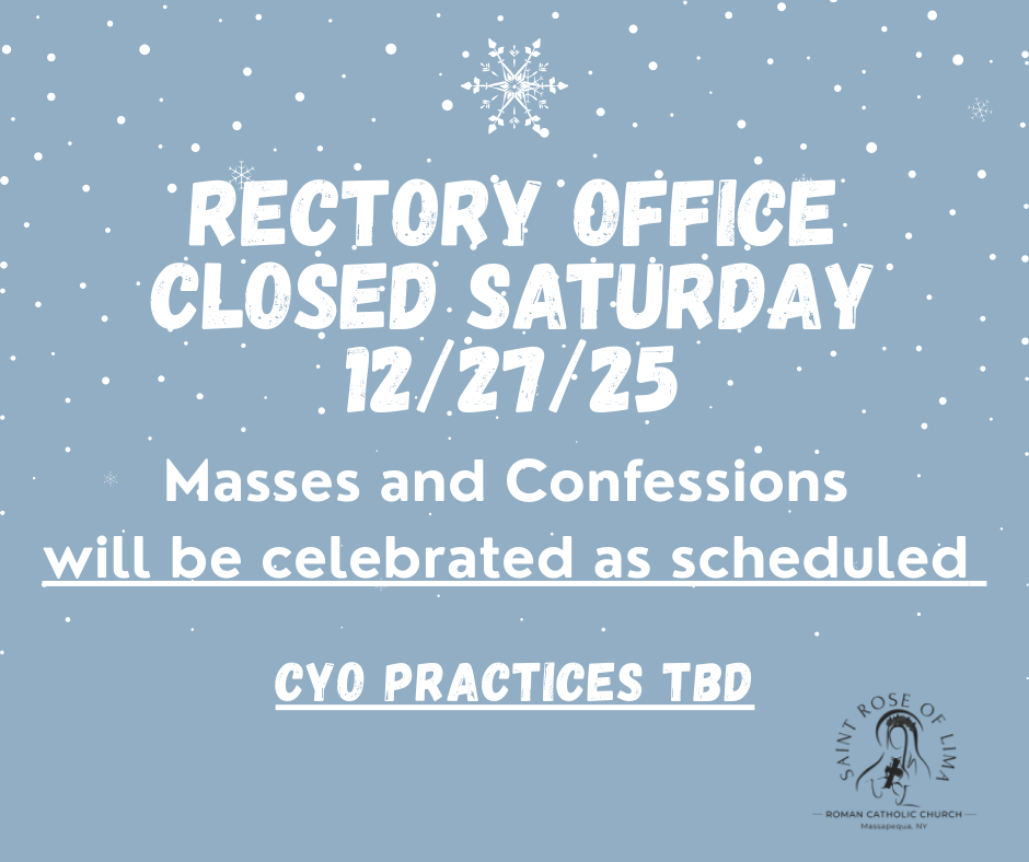 Rectory Closed Sat. 12/27/25, due to storm